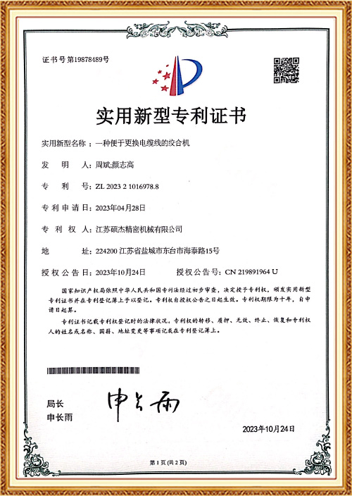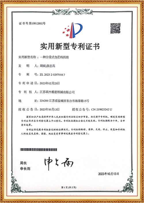 Membangunkan mesin Three Core Back Twisting Stranding dan Taping yang pertama untuk menyelesaikan masalah proses pelanggan dalam twisting frekuensi tinggi. Pusingan, ditambah dengan kesan pusing belakang 100%nya sendiri, menjadikan prestasi ujian wayar asal lebih baik.